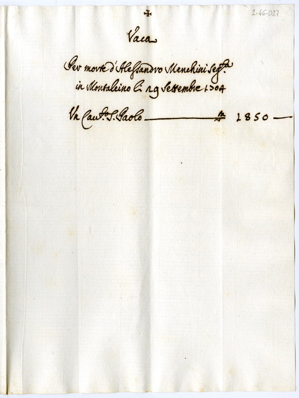 Canonicato vacante per morte di Alessandro Menchini (1704 settembre 29)