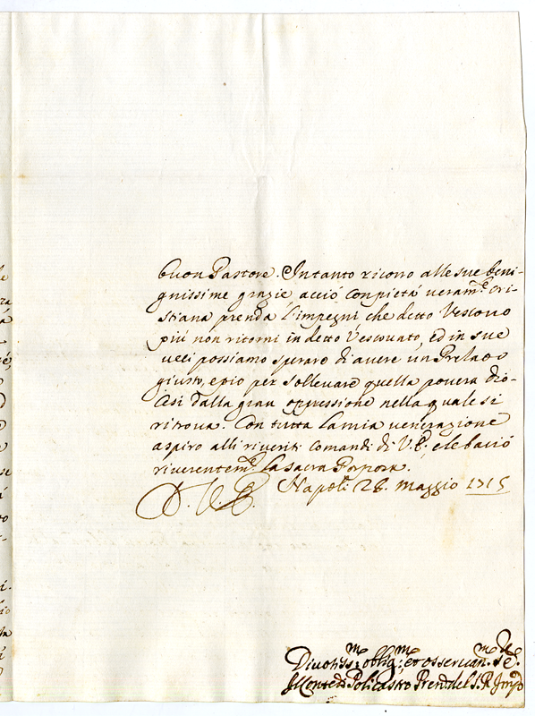 Lettera del Conte di Policastro al Cardinale Annibale Albani (1715 maggio 28)
