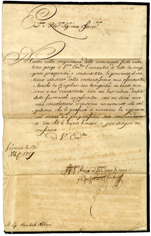 Lettera al cardinale Annibale Albani (1729 dicembre 17)
