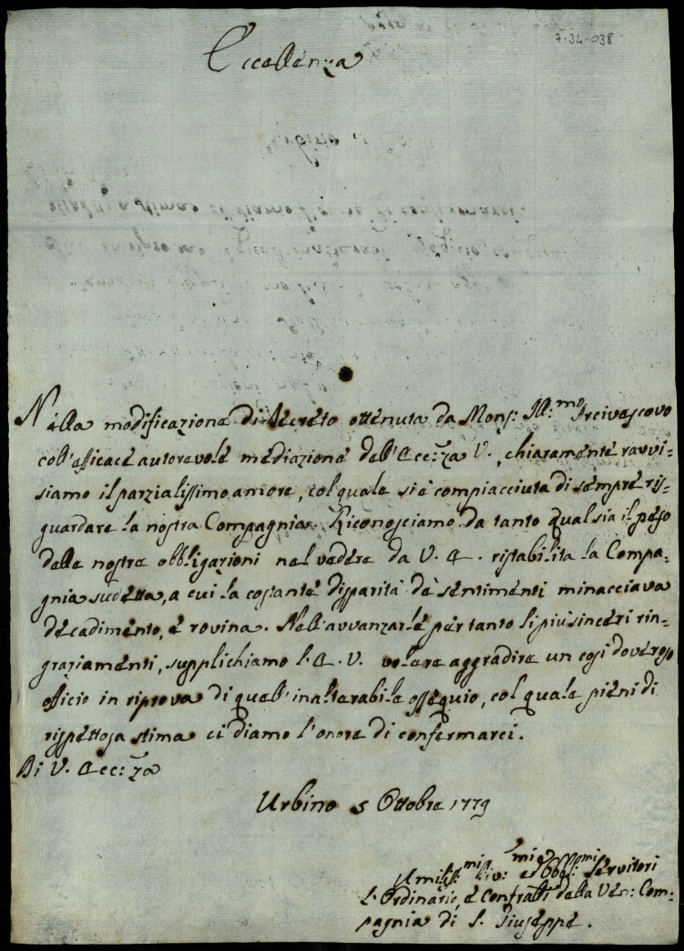 Lettere diverse ricevute dal principe Orazio Albani nella permanenza in Urbino del 1779