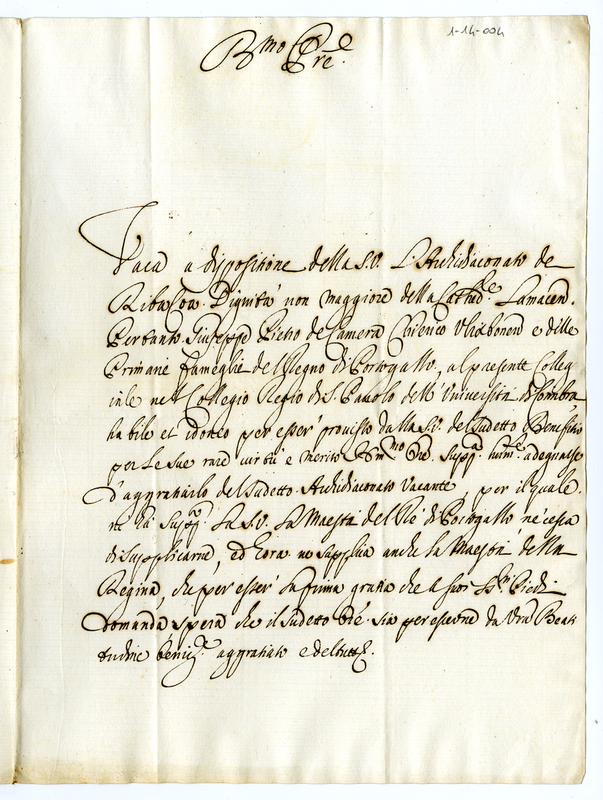 Si propone il chierico Giuseppe Pietro Camera all'arcidiaconato di Riba