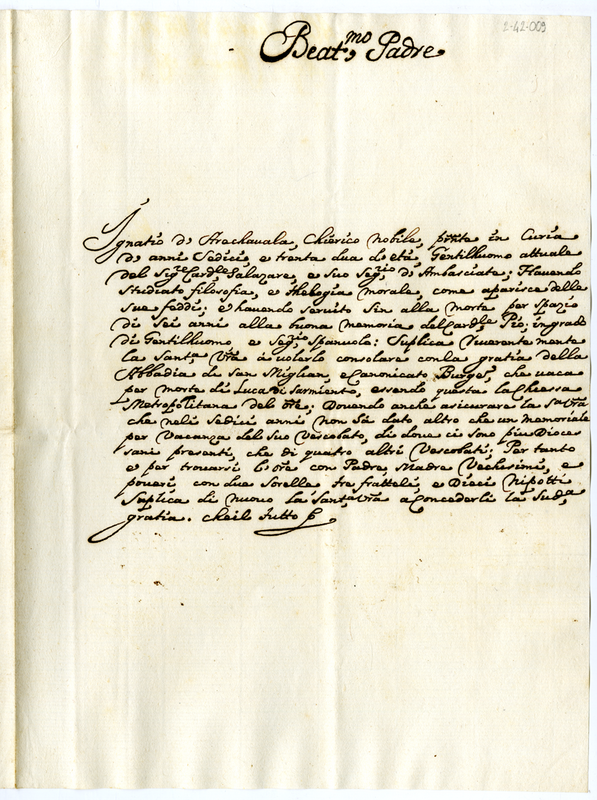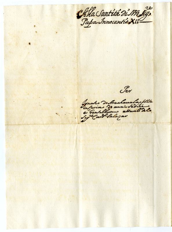 Lettera di Ignatio D'Arachavala a papa Innocenzo XII (1691- 1700)