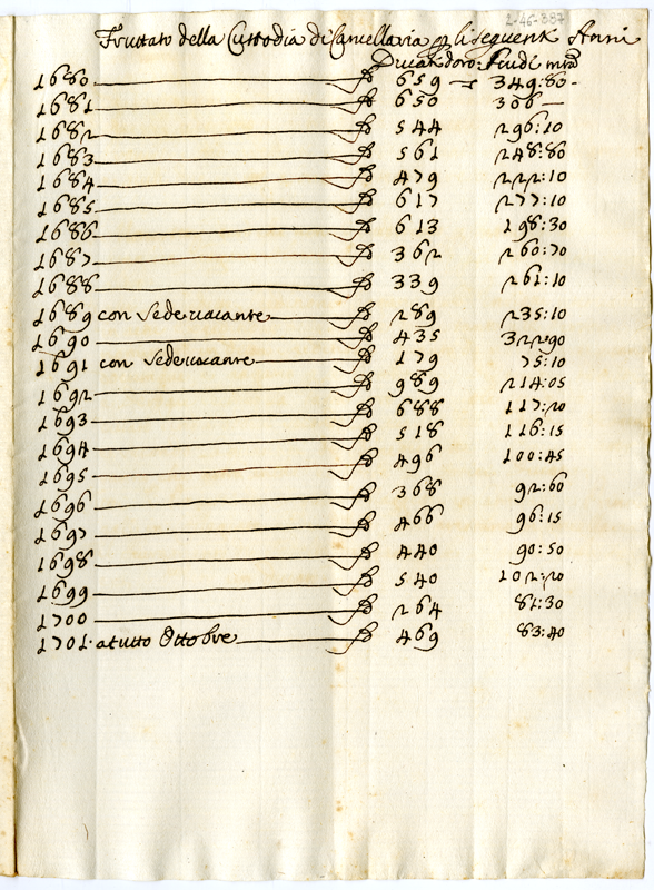 Fruttato della custodia di cancelleria per gli anni 1680-1701