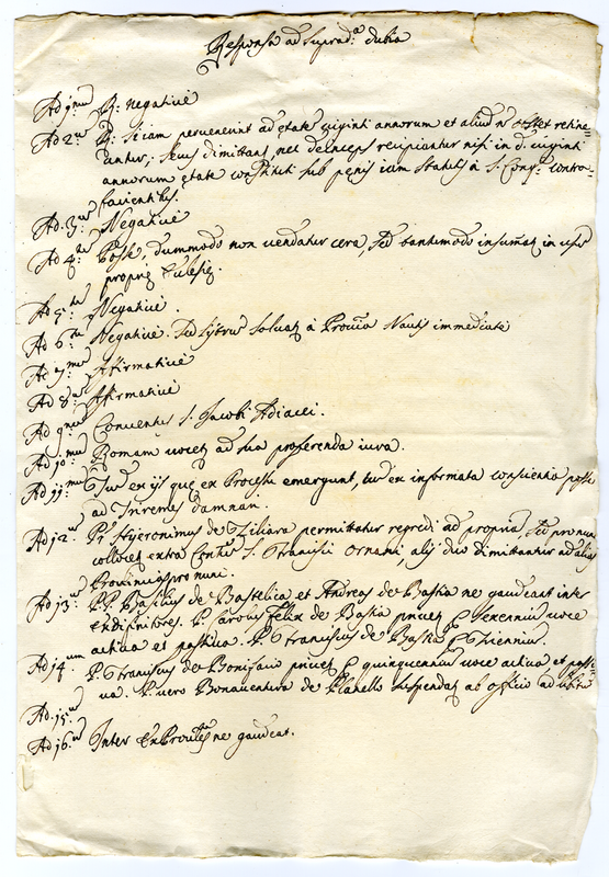 Archivio Albani|"Scritture spettanti alli frati dell'ordine de minori Conventuali, Osservanti, Riformati, Capuccini"|"Osservanti, e Riformati (1)"|Documenti contenuti