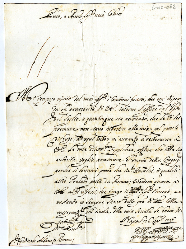 Lettera di Filippo Orsini al Cardinale Annibale Albani (1715 luglio 26)