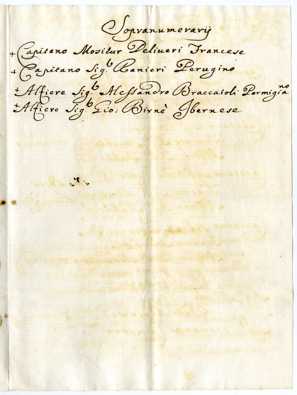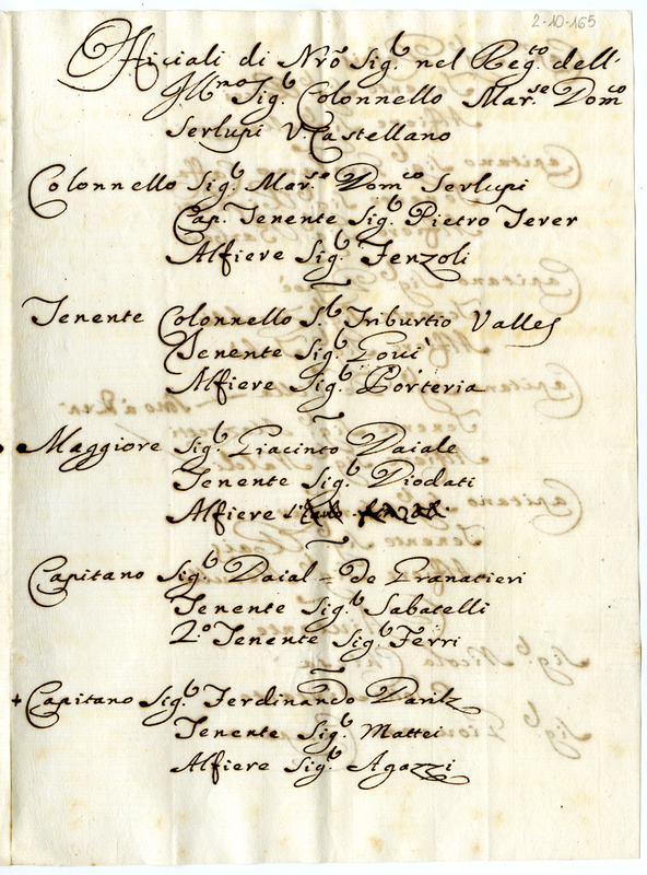 Officiali di Nostro Signore nel Reggimento dell'Illustrissimo Marchese Domenico Serlupi Vice Castellano (1709)