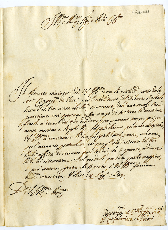 Lettera del gonfaloniere e priori a Giovanni Francesco Albani (1684 luglio 14)