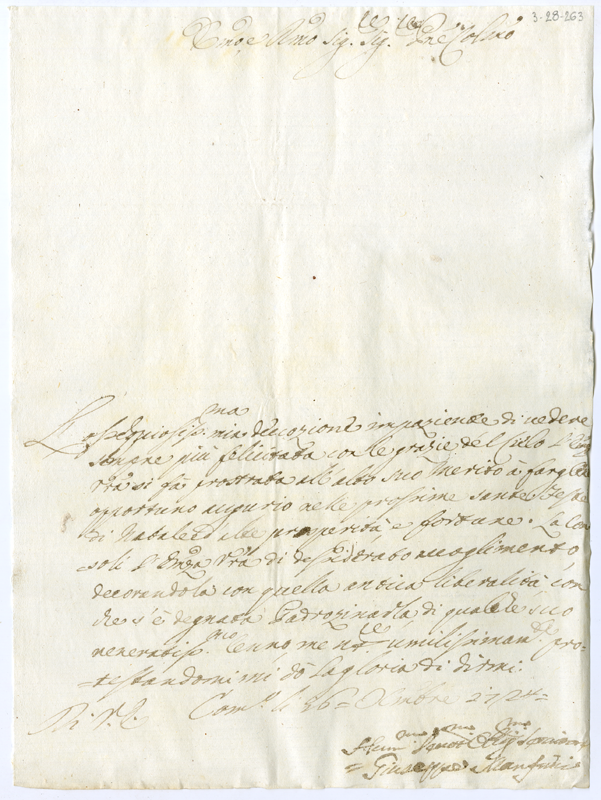 Lettera di Giuseppe Manfrini al cardinale Annibale Albani (1724 dicembre 16)