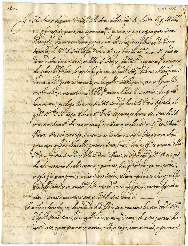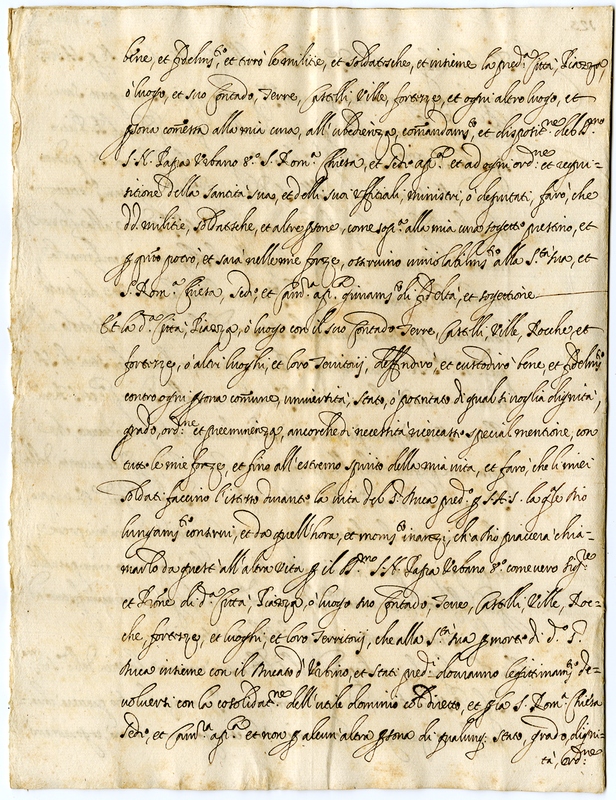 Forma del giuramento che i Governatori delle città del ducato di Urbino dovranno offrire a monsignor Virile e al cardinale Antonio Barberini dopo la devoluzione.
