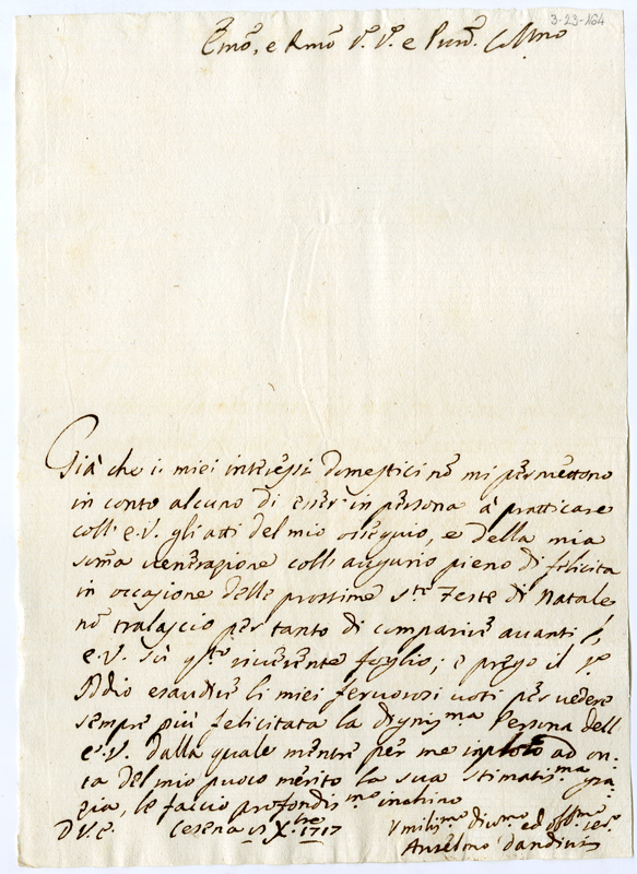 Lettera di Anselmo Dandini al cardinale Annibale Albani (1717 dicembre 8)