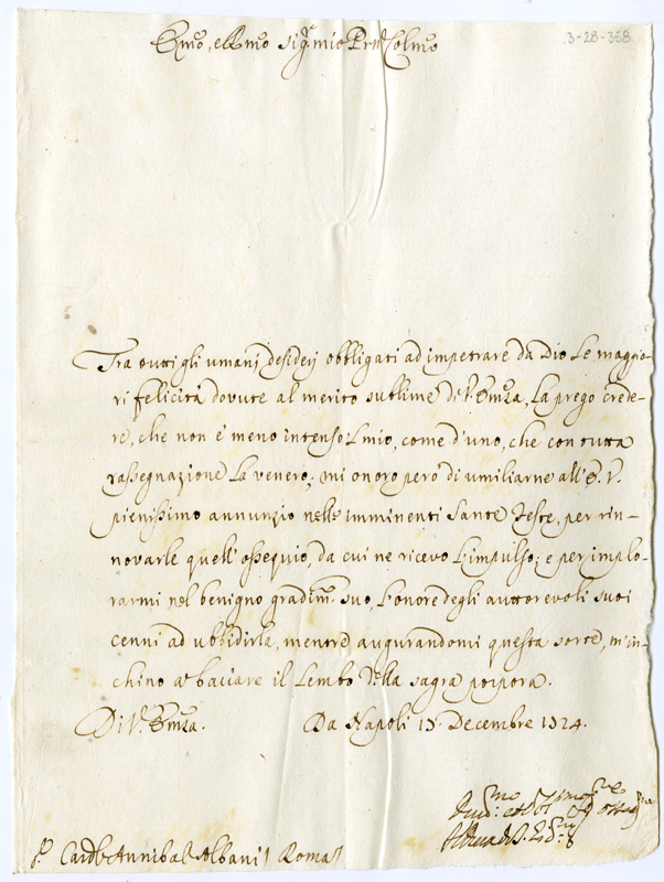 Lettera al cardinale Annibale Albani (1724 dicembre 17)