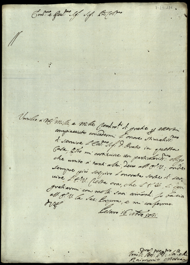 Lettere al cardinale di S. Clemente. 1730 - 1731