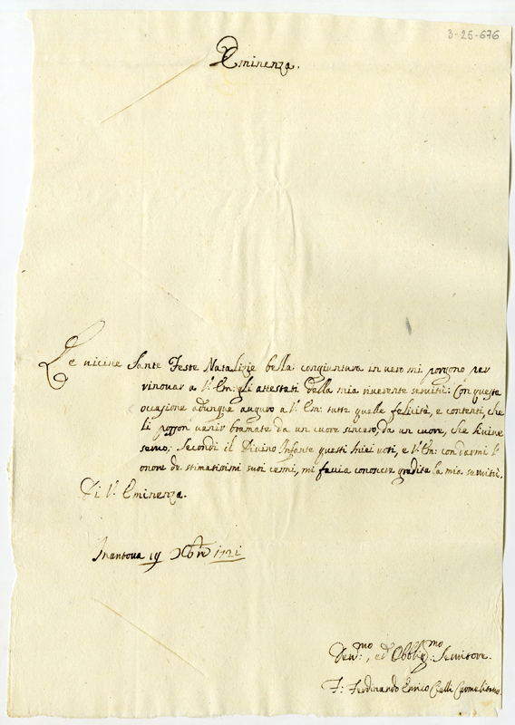 Lettera di Ferdinando Enrico Cialli al cardinale Annibale Albani (1721 dicembre 19)
