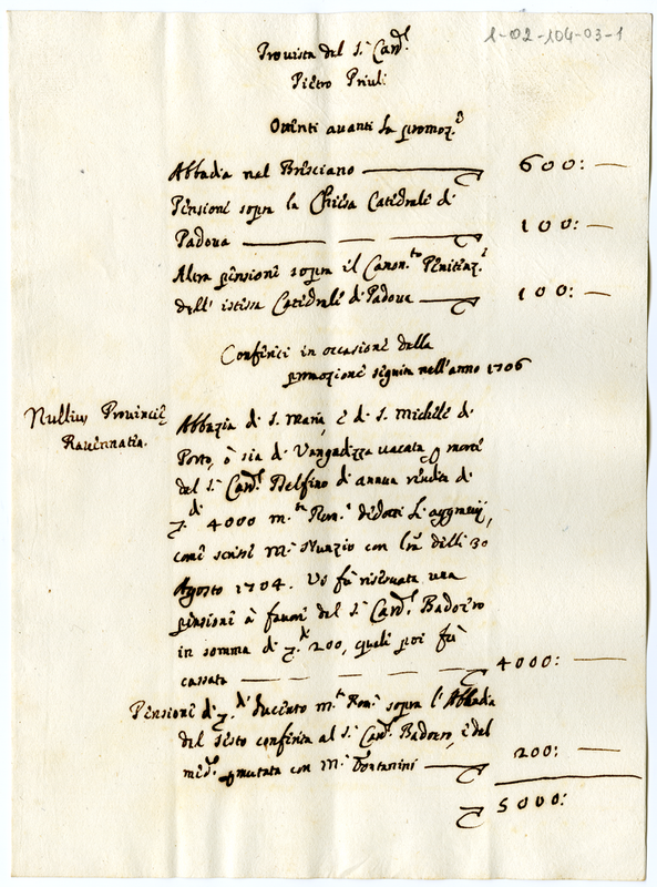 | bo.correlazioni | Allegato a: Provista del Sig. Card. Pietro Priuli | |