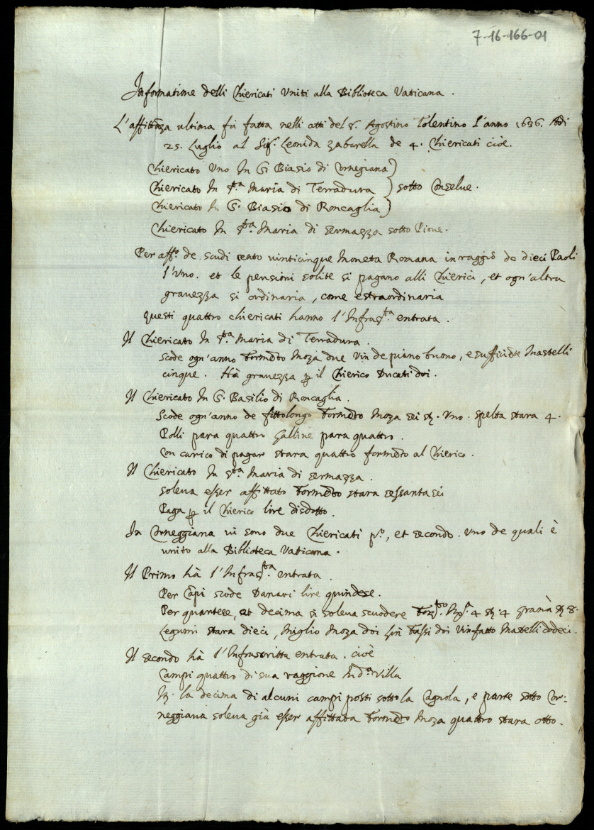 Scritture appartenenti alli Rinaldi custodi della Biblioteca Vaticana