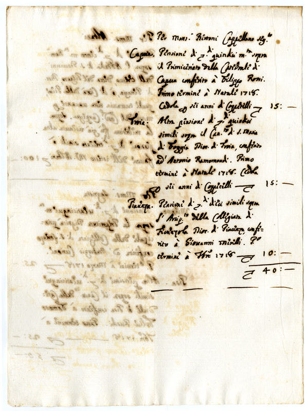 Elenco di pensioni per Monsignor Albani, Sagrista e Bettoni (1700-1721)