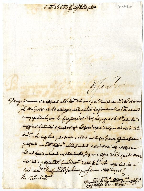 Lettera di Ignazio Paccaroni al cardinale Annibale Albani (1716 dicembre 18)