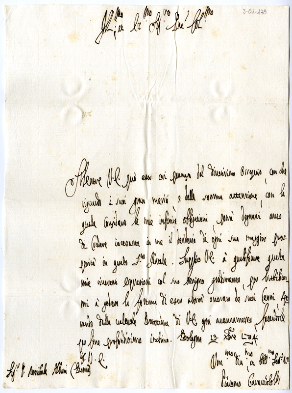 Lettera di Giacomo Caracciolo ad Annibale Albani (1704 dicembre 23)