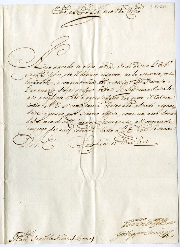 Lettera di Filippo Orsini al cardinale Annibale Albani (1727 dicembre 15)