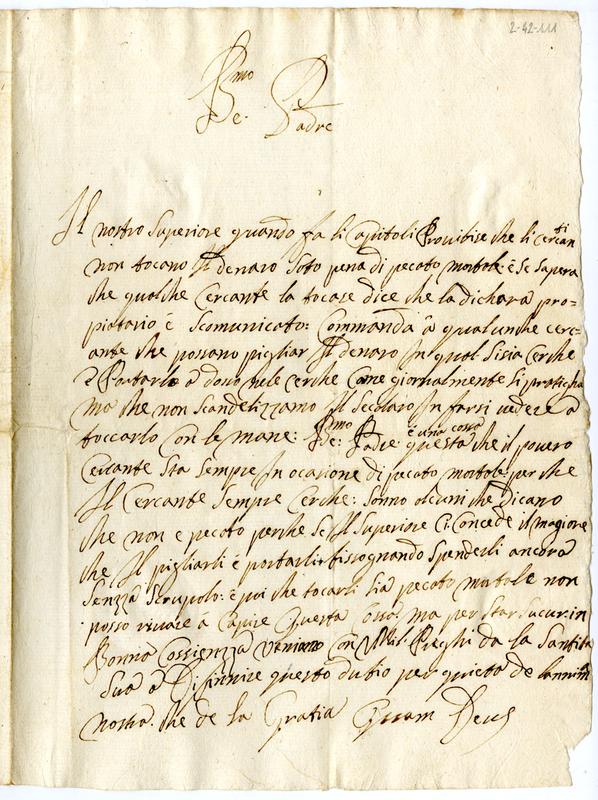 Chiedono al pontefice di definire una questione di coscienza: se i cercanti possono toccare il denaro senza pena di peccato e scomunica