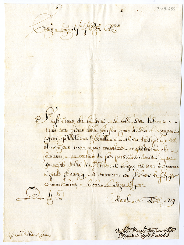 Lettera del vescovo di Mottola al cardinale Annibale Albani (1719 dicembre 16)