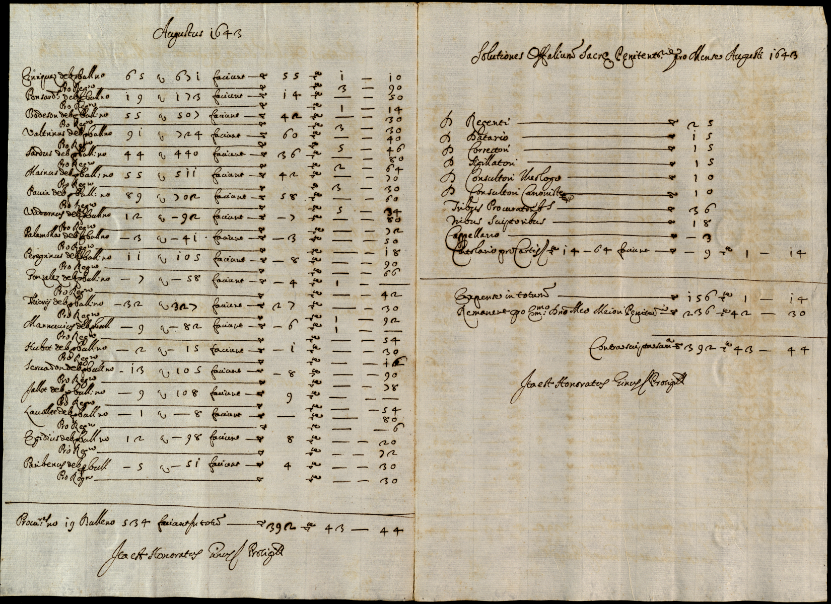 Note contabili relative agli interessi della Penitenziaria spettanti al cardinale S. Onofrio