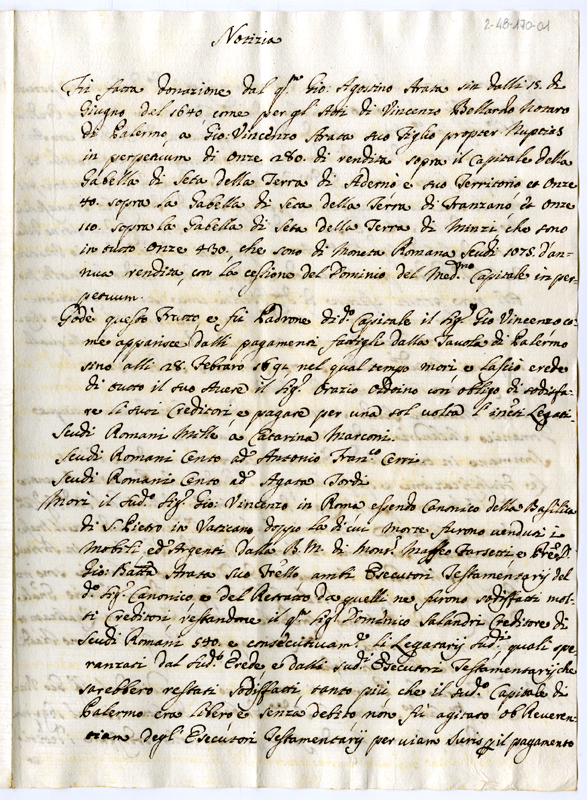 Sula eredità di Giovanni Agostino Arata (1700-1721)