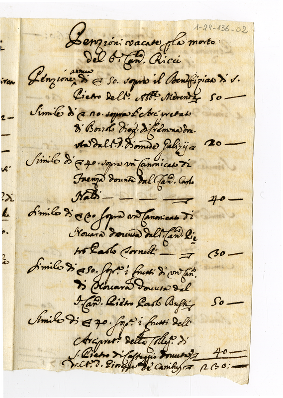 Pensioni vacate per la morte del s. can. Ricci (1713)