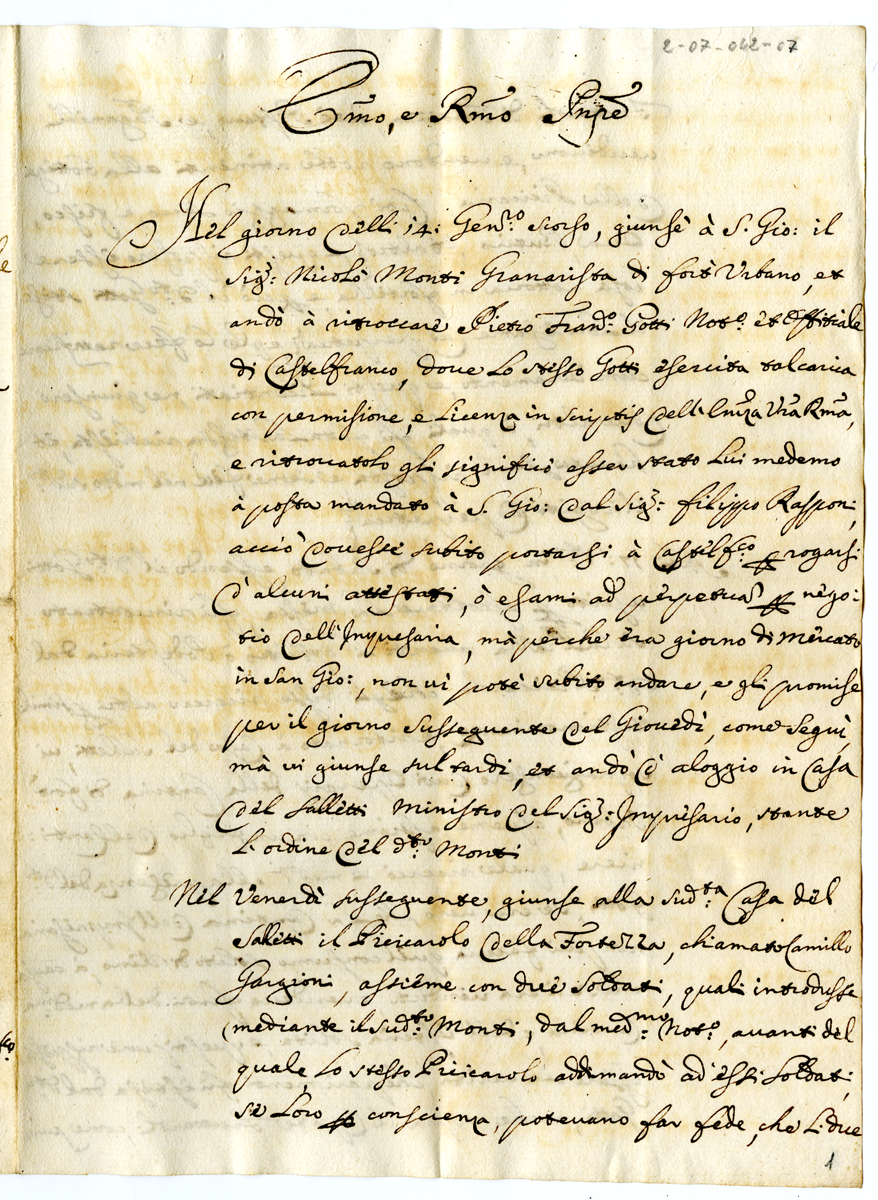 Lettera di Pietro Francesco Gotti a un cardinale (1705)