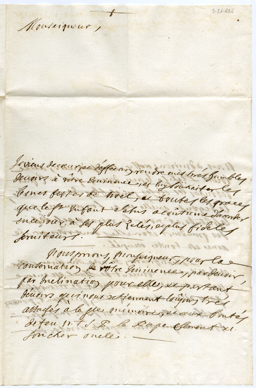 Lettera di Bonnet indegno prete al cardinale Annibale Albani (1729 dicembre 1)