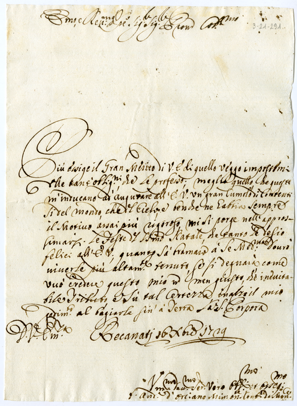 Lettera di Andrea d'Orciano al cardinale Annibale Albani (1729 dicembre 16)