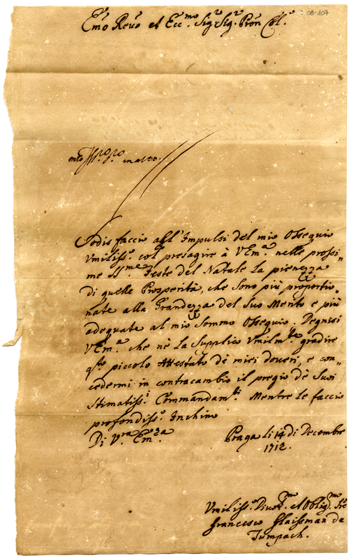 Lettera di Francesco Flaissman de Tumpach al cardinale Annibale Albani (1712 dicembre 14)