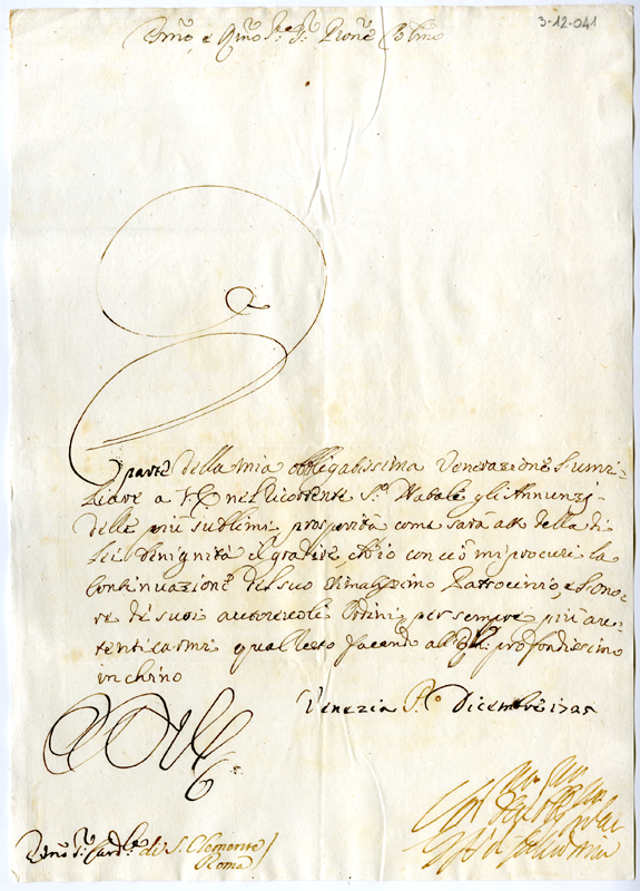 Lettera al cardinale Annibale Albani (1725 dicembre 1)