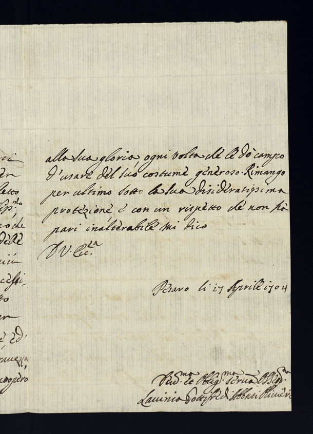 Lettere di negozio e di complimento all'Illustrissima Eccellenza dell'anno 1704. Semestre primo