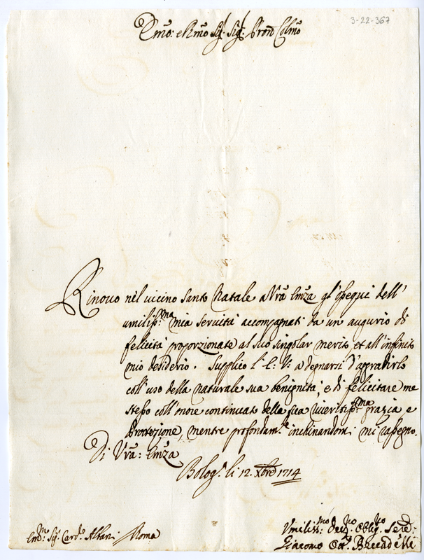 Lettera di Giacomo Ottavio Beccadelli al cardinale Annibale Albani (1714 dicembre 12)