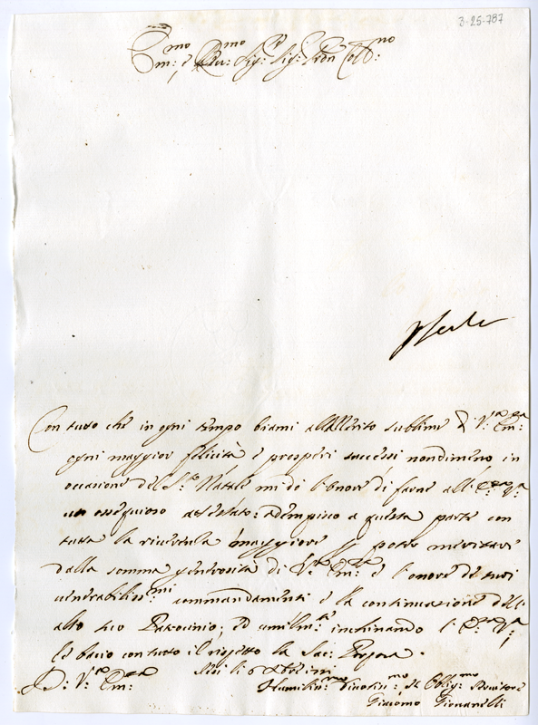 Lettera di Giacomo Giovannelli al cardinale Annibale Albani (1721 dicembre 6)