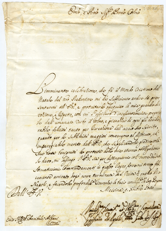 Lettera di Epifanio di Napoli al cardinale Annibale Albani (1721 dicembre 9)