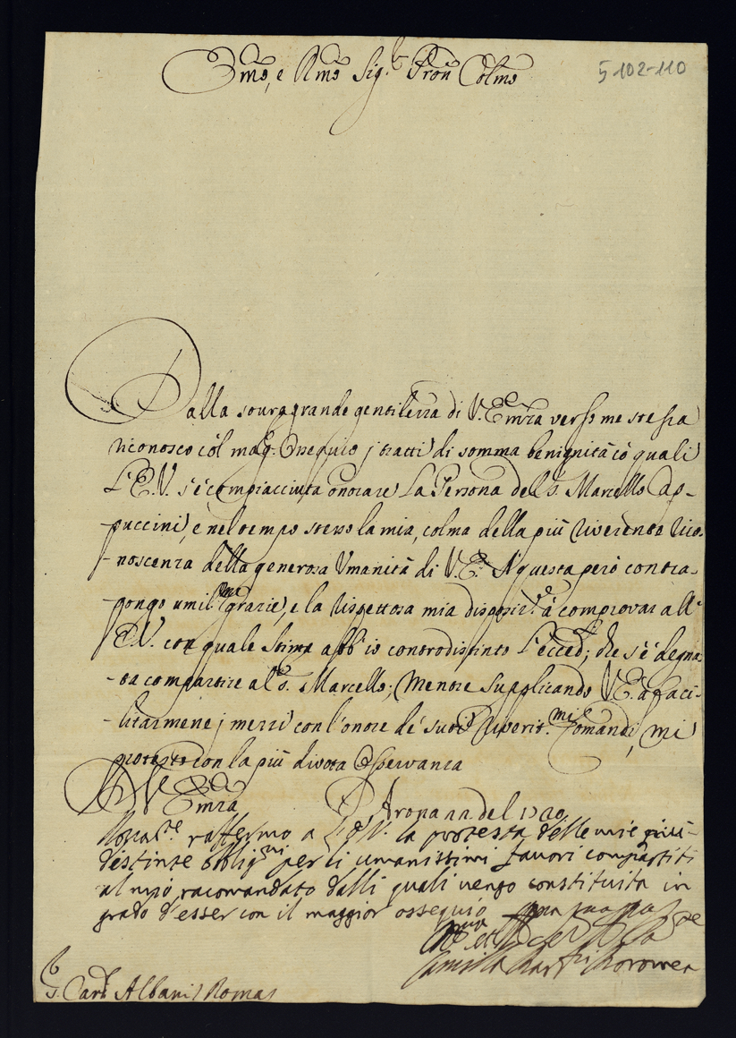 Lettere di confidenza del 1720 e 1721