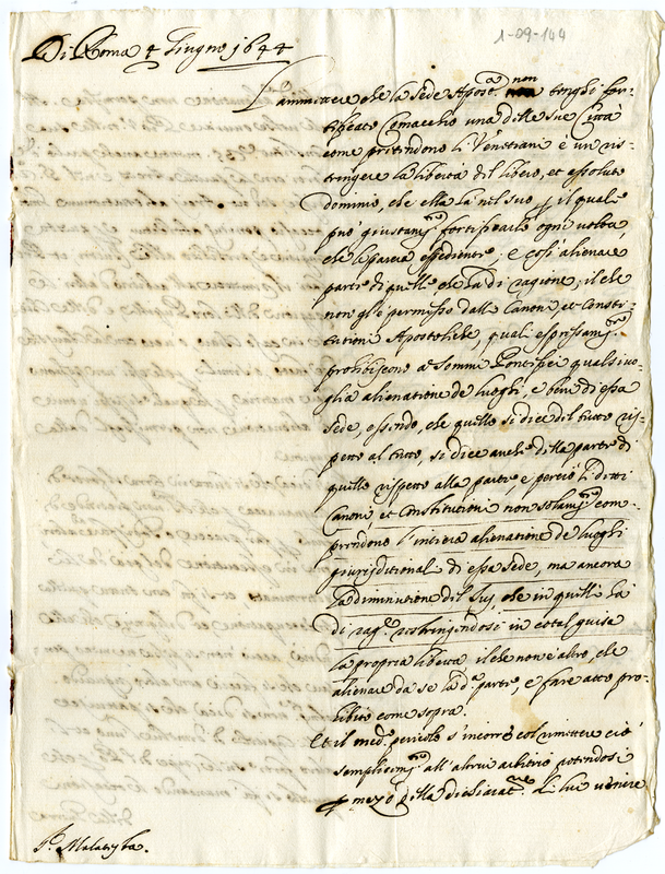 Lettera del cardinale Barberini Francesco senior a Malatesta Albani (1644 giugno 4)