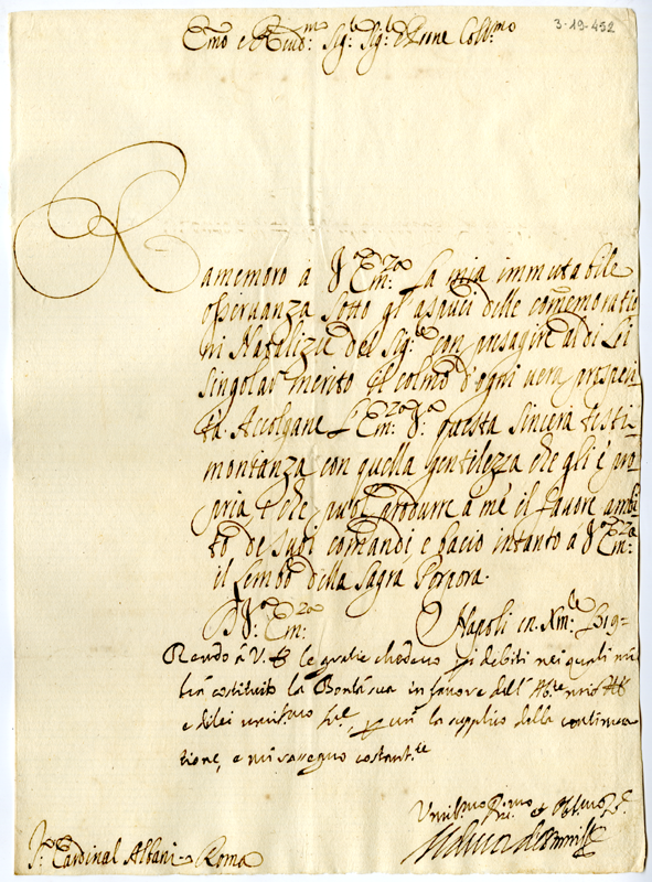 Lettera al cardinale Annibale Albani (1719 dicembre 12)
