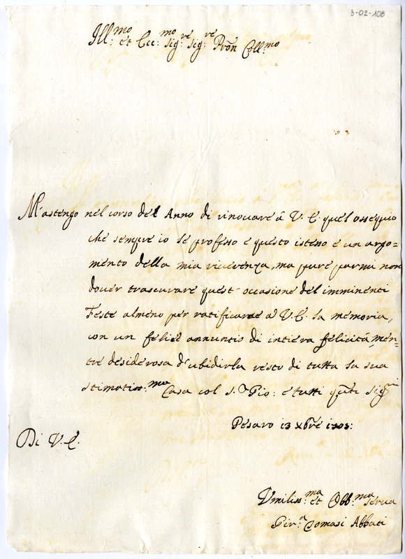 Lettera di Tomasi Abbati ad Annibale Albani (1705 dicembre 13)
