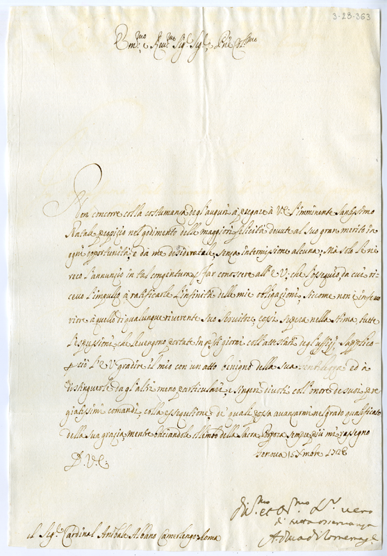 Lettera del duca di Torre Maggiore al cardinale Annibale Albani (1724 dicembre 15)