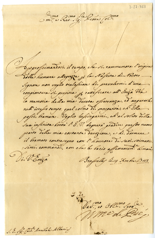 Lettera del principe di Prié al cardinale Annibale Albani (1723 dicembre 14)