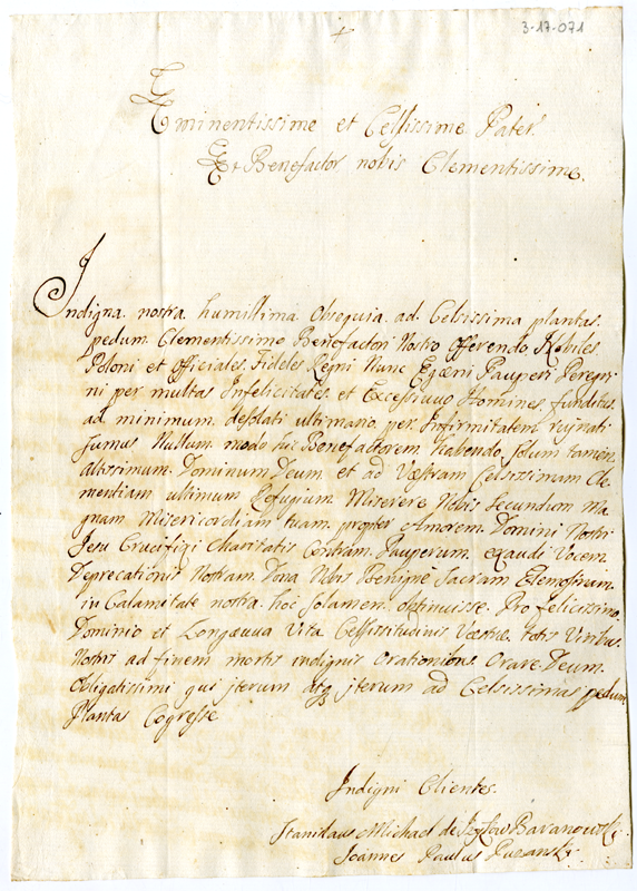 Lettera di Stanislao Michele Izykow Baranovzki e Giovanni Paolo Puzanski a Papa Clemente XI (1700-1721)