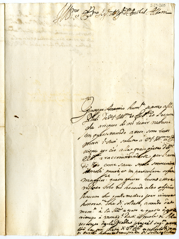 Lettera di Giuseppe Antonio Castriota ad Annibale Albani (1700-1721)