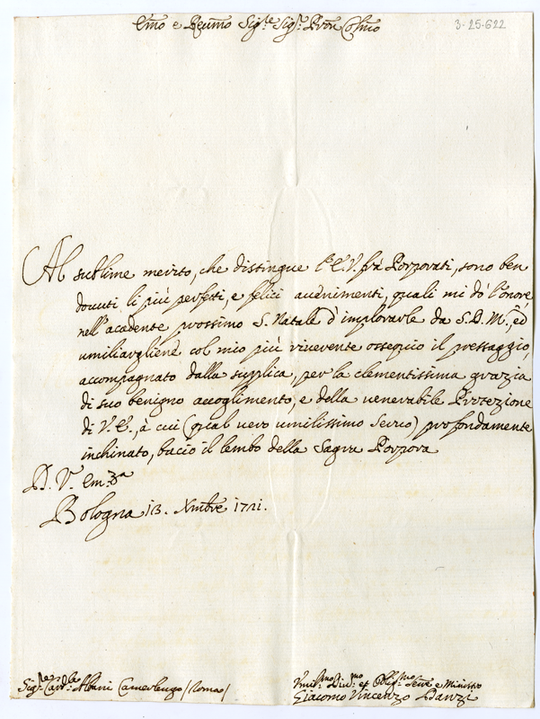 Lettera di Giacomo Vincenzo Danzi al cardinale Annibale Albani (1721 dicembre 13)
