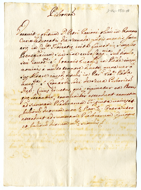 | dc.description | Frutti e oneri della chiesa vacante di Pistoia. | |