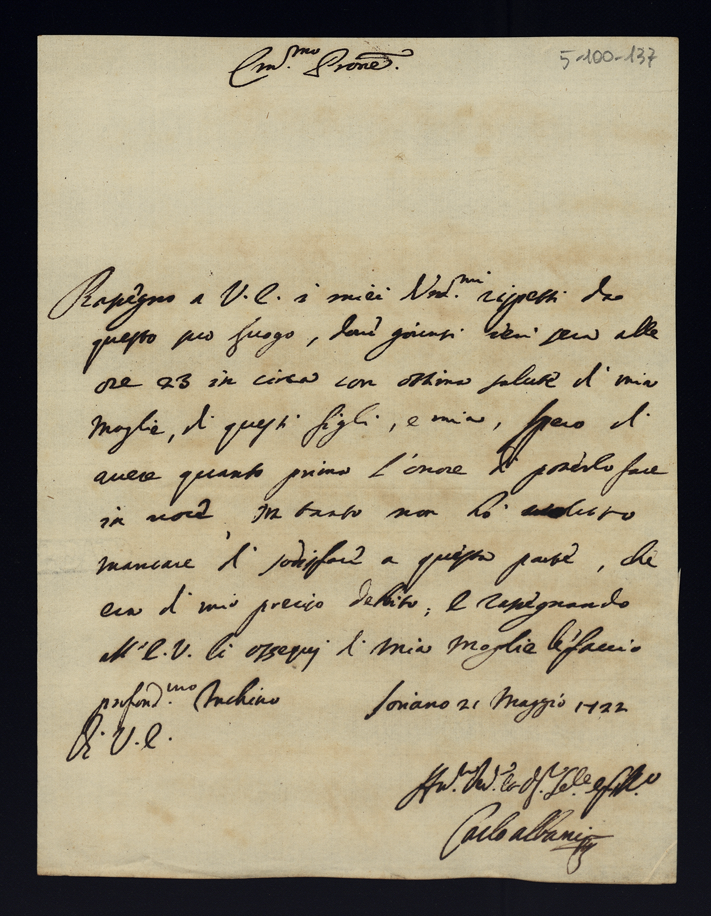 Lettere di confidenza. 1722