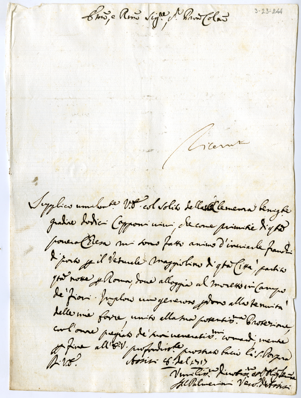 Lettera di Palmerini vescovo di Assisi al cardinale Annibale Albani (1717 dicembre 8)