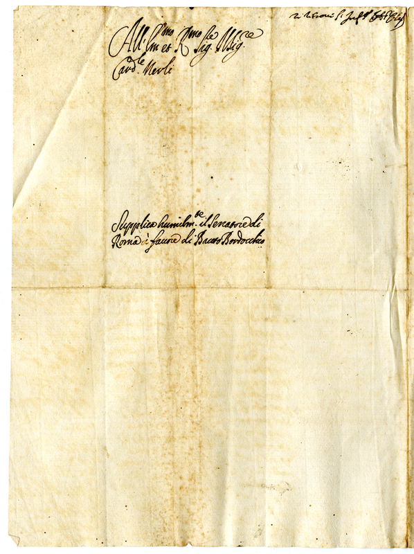 del Senetare di Roma a favore di Bruto Bardocchi al cardinale Merli (1691-1700)